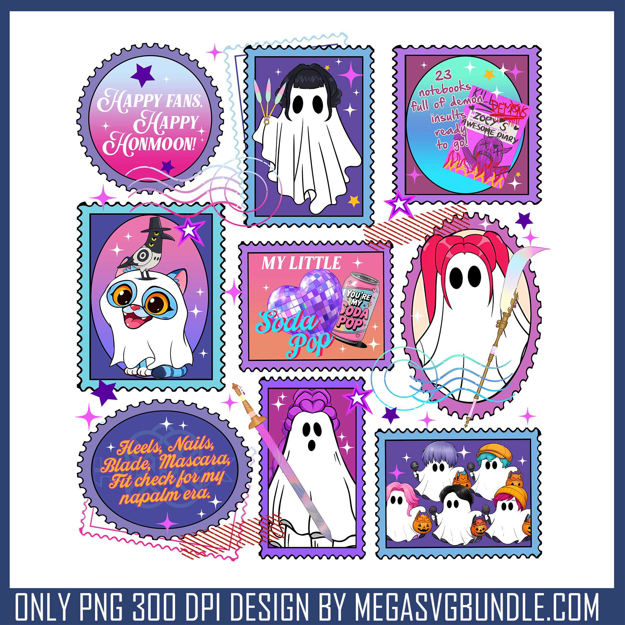 Huntrix stamp halloween desing png, halloween costumes kpop png quantity